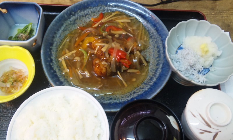 本日の日替わりは鰈の竜田揚げ野菜あんかけです。