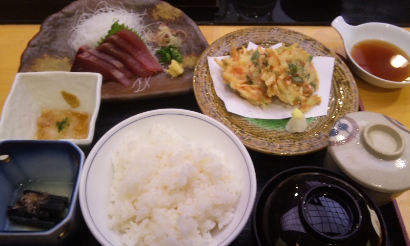 鰹の刺身と桜海老のかき揚げ!