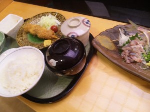 白身魚の竜田揚げ野菜あんかけとイカ刺し