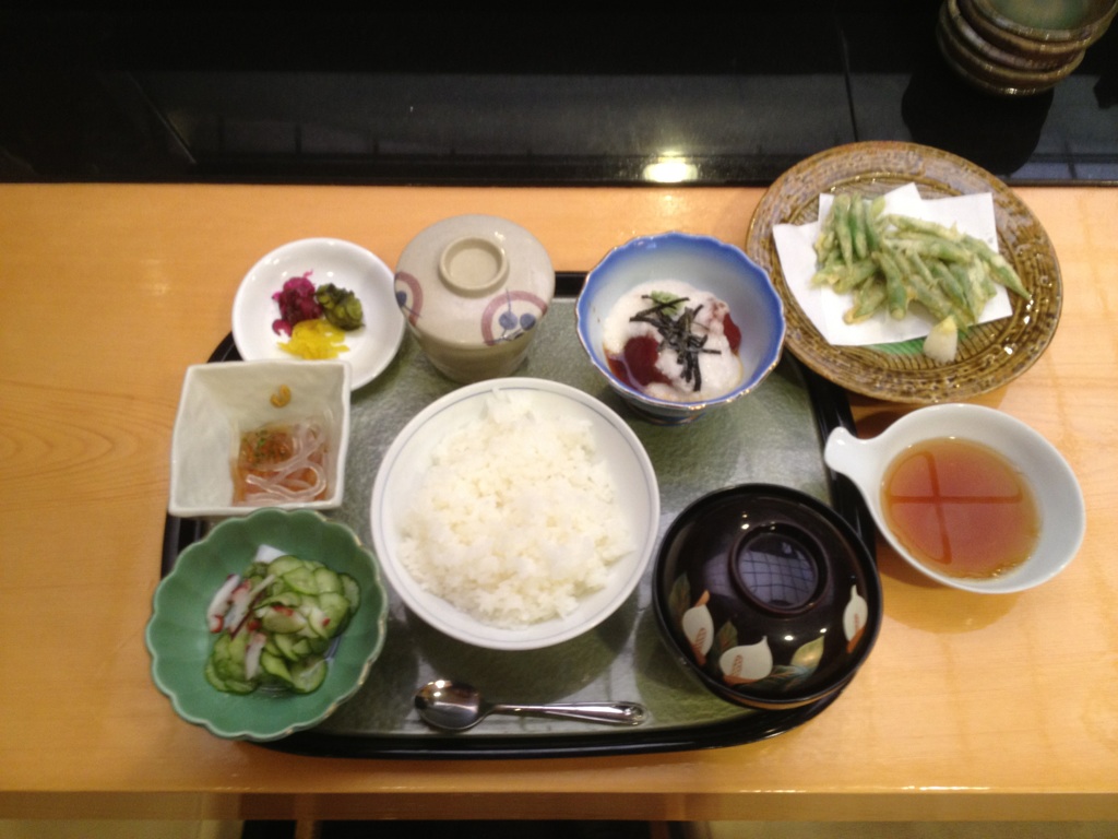鮪の山掛けとインゲンのかき揚!