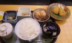 白身魚の竜田揚げ野菜あんかけとイカ刺し