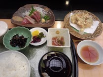 白身魚の竜田揚げ野菜あんかけとイカ刺し